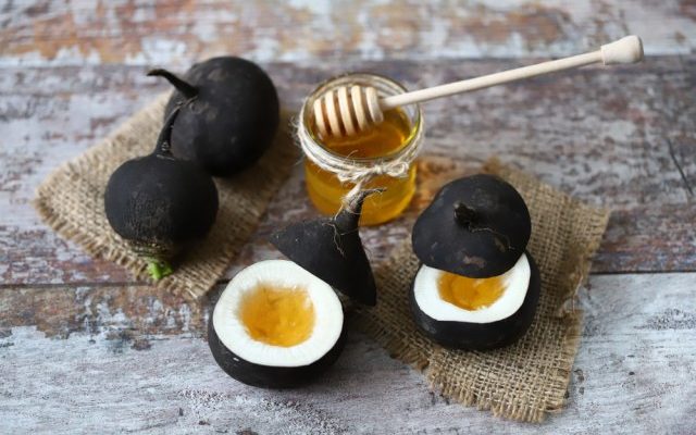 – Излупете ја големата црна ротквица, а потоа процедете ја со газа, која ќе ја измешате со мед.