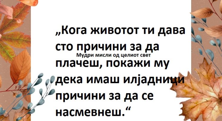 Мудри мисли од целиот светМИСЛА НА ДЕНОТ петок, 27.10.2023среда, 25.10.2023 Сподели на FacebookTweet-ниСледи нè