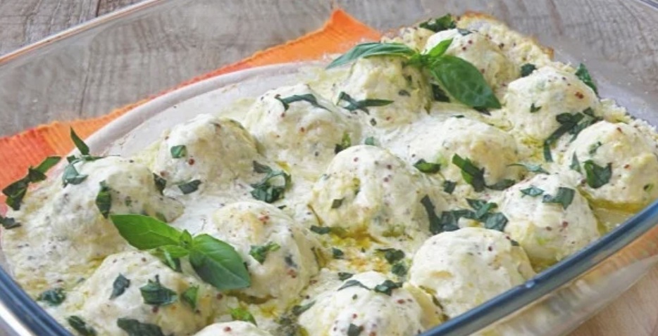 Во сад изрендајте кашкавал. Додадете ги павлаката, сенфот, бибер и сол и промешајте. Отворете ја рерната и ставете по една лажичка од смесата на секое од ќофтињата. Печете уште 10 минути додека не се стопи сосот.