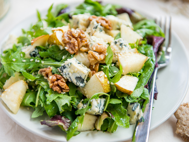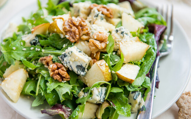 САЛАТА СО РУКОЛА, КРУШИ И СИНО СИРЕЊЕ