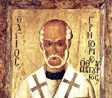 Свети Григориј се роди од родители незнабошци. Во младоста ја бараше утехата во елинската и египетската мудрост, но откако се увери во нивната недоволност, се сврти кон христијанството.